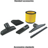 • Includes: 8 ft. x 2-1/2" flex. hose, 2 pc. x 2-1/2" extension wand, contoured handle with air control, cartridge filter, foam filter, 14" floor sweep with squeegee insert, gulper tool, crevice tool and hanging accessory storage bag